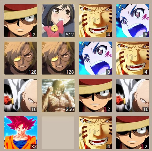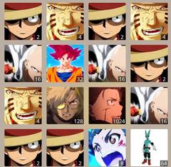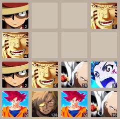 Here is 2048 game about Anime .Like: ONE PIECE, Attack on Titan, Dragon Ball and so on.