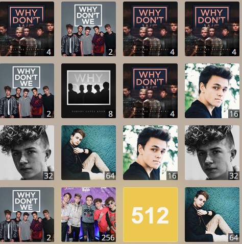 Why Don't We (commonly abbreviated WDW) is an American boy band consisting of Zach Herron, Jack Avery, Daniel Seavey, Corbyn Besson, and Jonah Marais. Here is 2048 game about Why Don’t We. The band has more than two and a half million subscribers on YouTube with 462 million views. How to play: Use your arrow keys to move the tiles. When two tiles with the same image of Why Don’t We touch, they get promoted!