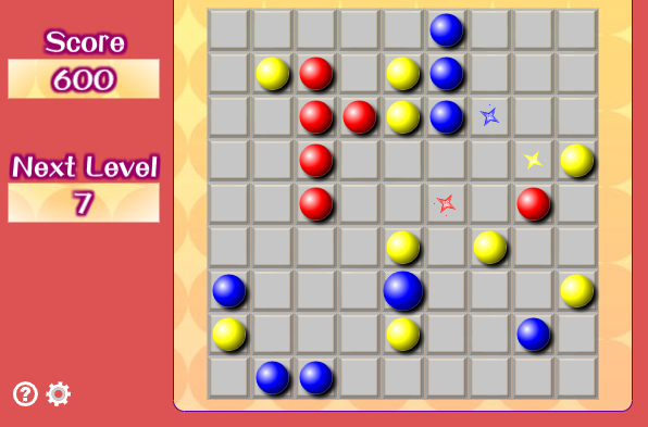 Move the balls to form lines of 5 or more balls of the same color. The lines can be horizontal, vertical or diagonal. Your goal is to clear the board before it is filled with balls. Click to play Ball Lines game free online now! Have a good time~