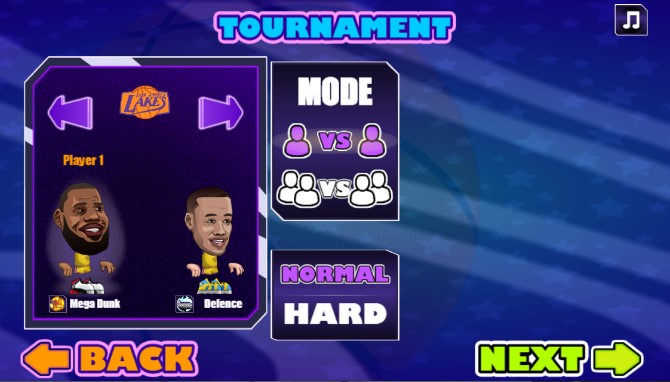 Basketball Stars is a cool 2 player basketball game. Choose your team and enter a challenging tournament. Control your player to perform awesome dunks and 3 pointers to win the game. Feel free to block and slap your opponent to knock him out and get the ball, and pay attention to the super shot bar on the top of the screen, once it's fully loaded, you can use the hot special dunk from wherever you are standing, it never fails. Be the best player on the field. Click to play the game free online now! Have a good time!
