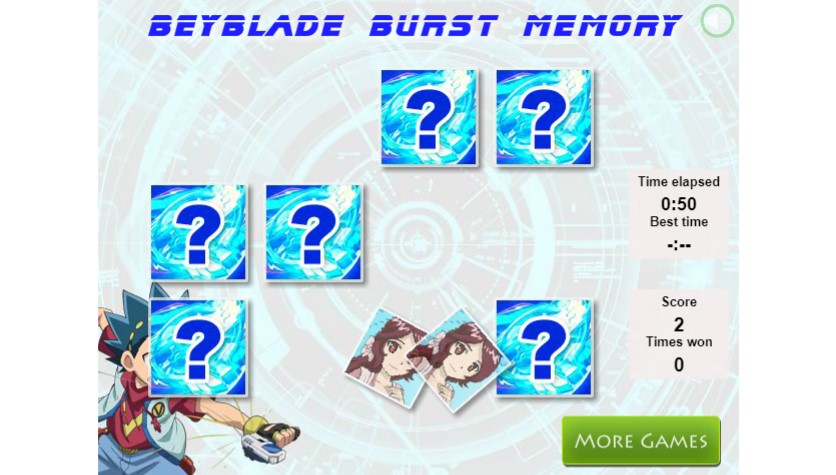 Beyblade Burst Memory is an online game that you can play in modern browsers for free. Beyblade Burst Memory Online is in the category of Skill. This game has received 26071 plays and 77% of game players have upvoted this game. Beyblade Burst Memory is made with Flash technology, and it's available on only PC web. You can play the game free online on your Computer.