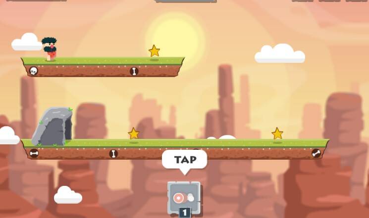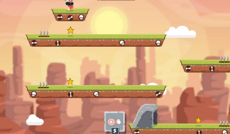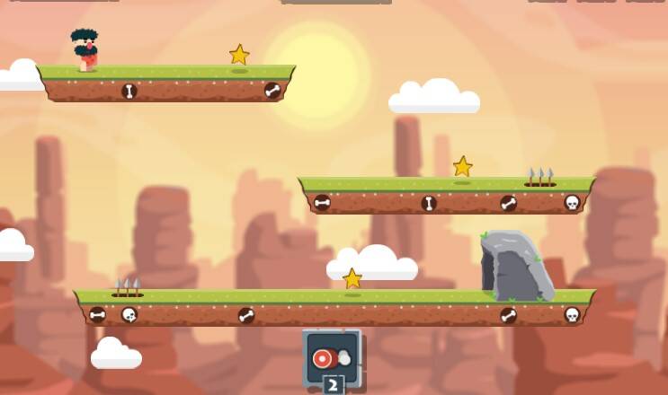 This caveman always wants to see the outside world, but he can't do it by himself because it's so dangerous. Can you help him to finish his adventure? You need to help him avoid those deadly road blocks on the road and enter the cave. Good luck!