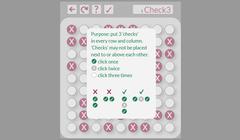 The rules of the game are: put three check marks in every row and column. Check marks may not be placed next to or above each other. You can put a cross on the positions that may not contain a check mark. Have fun with Check3.