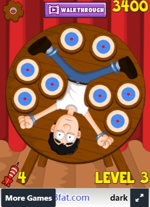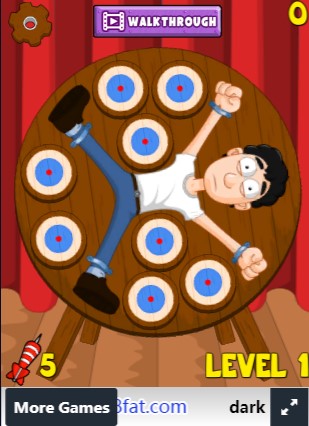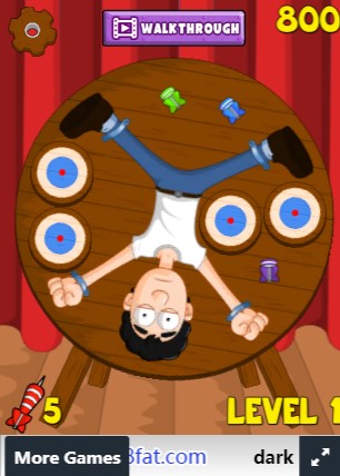 Throw darts at the targets! The poor fellow is placed on a rotary wheel. Click to throw the darts. The nearer to the center of the poor fellow, the higher score you get. Don't hurt the poor fellow. Click to play the game free online now! Have a good time!