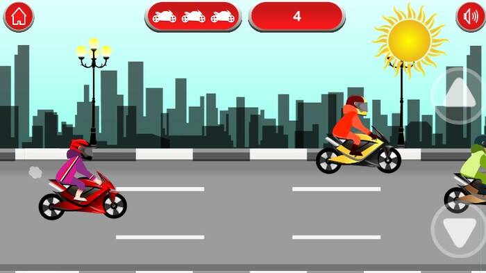 EG Motorcyclists is a casual game in which you must move among 3 lines as a skilled motorcyclist. Just ride on your line without hitting other motorcyclists and holes. You only have 3 chances or lives to make yourself still on track. You can adjust your position with the up or down movement. The speed of your motorcycle in game is increased gradually to make you confused. It's time to tell us what high score you can get! Click to play the game free online now! Have a good time!