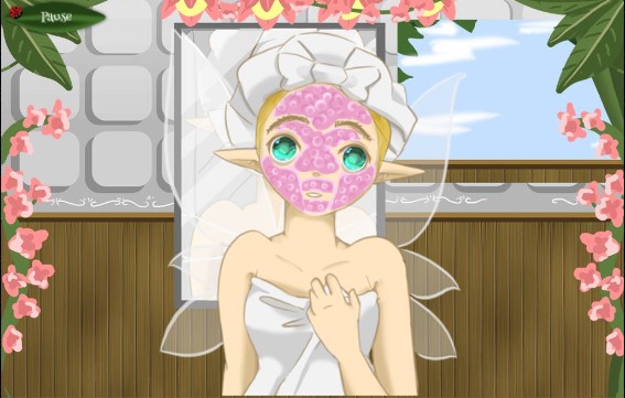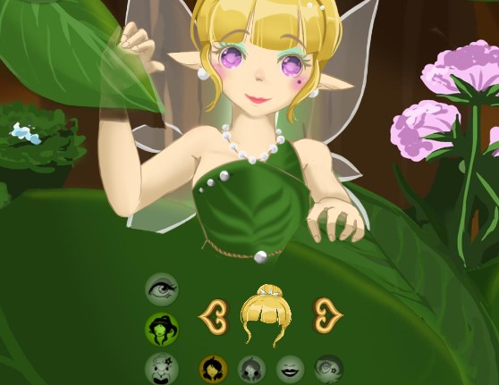 In the castle of fairies, there is a little fairy. She is ready to dress up to attend the banquet of the fairies. First, help her make a mask to clean the face. Then, you can help her choose different hairstyles, eye's colors, and then match gorgeous skirts and cute accessories. Have fun play with Fairy Make Up.