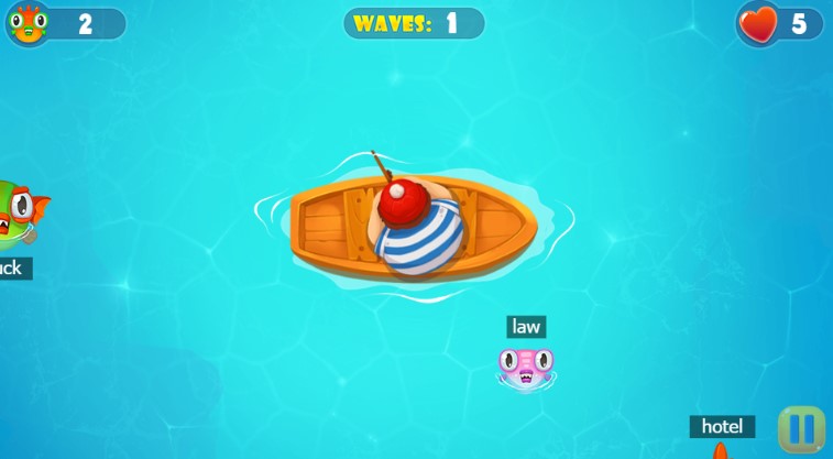 Fishing Guru is an educational typing game with funny game art animation. You are sitting on a boat in the middle of a lake over calm waters. Suddenly, there are mob of angry looking fish starting coming at you and attacking. Type the words in time to catch the fish. Don't let them get to the boat! Click to play the game free online now! Have a good time~