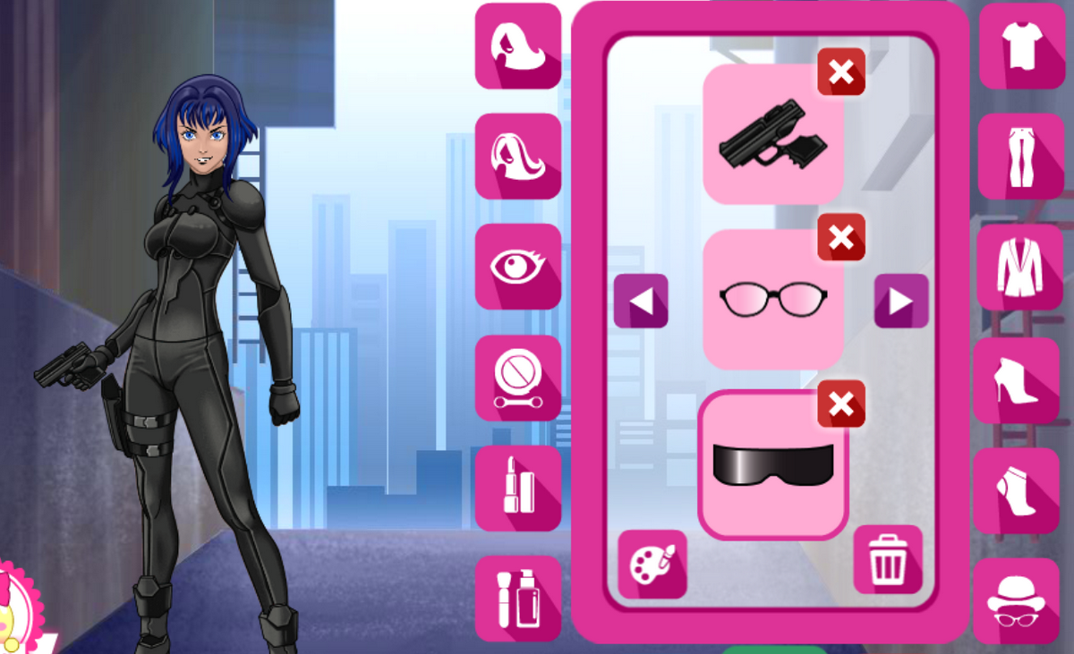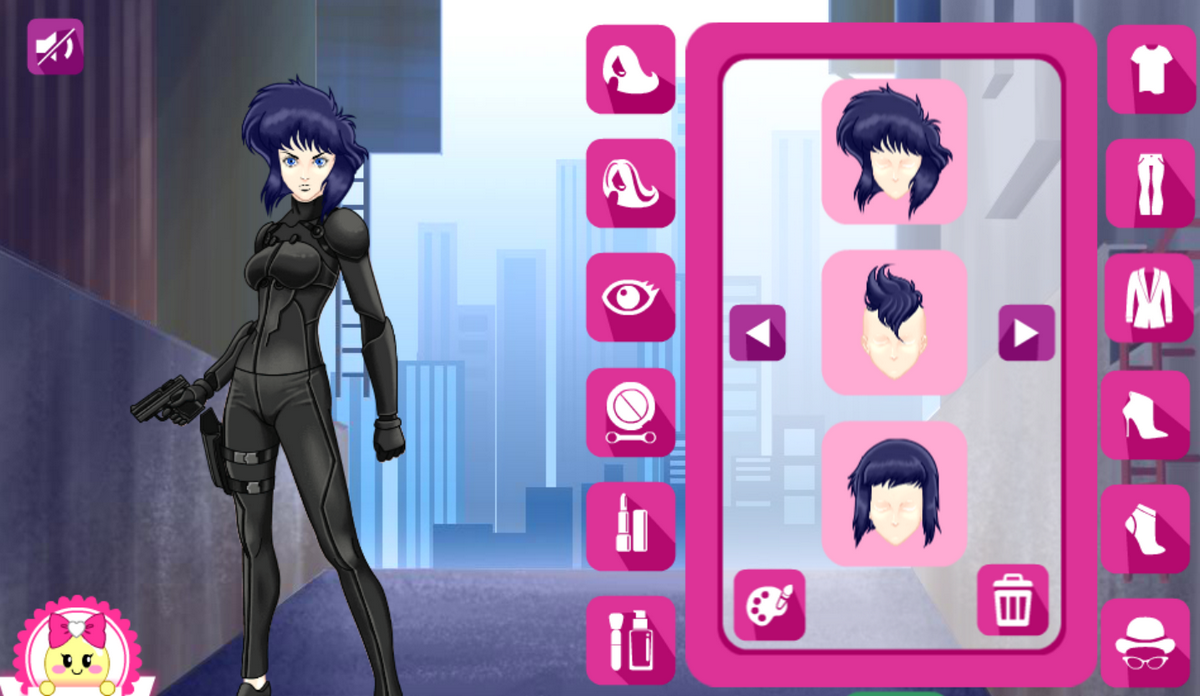 Dress up Major Motoko Kusanagi. She is a cyborg employed as the squad leader of Public Security Section 9, a division of the real Japanese National Public Safety Commission.