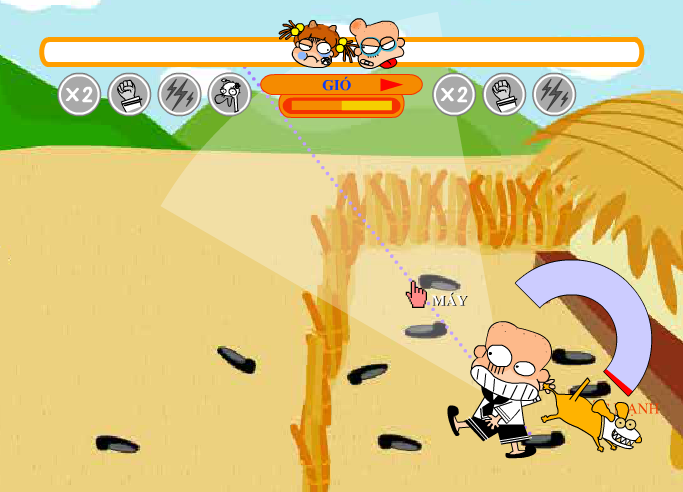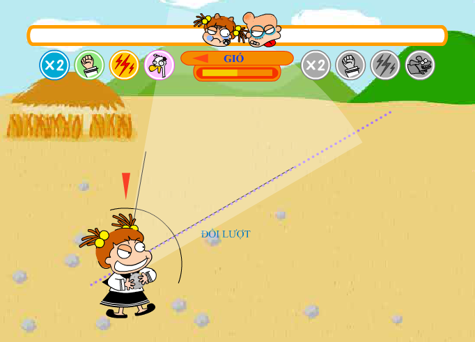 Hate Stoned is a fun game that you can play free online. You can play the game on "1 player" mode or "2 players" mode. There are two characters in the game. The girl is on the left side of the screen, and the boy is on the right side. In the game, you need to tap the screen to choose the right angle, and then hold the mouse to select to throwing power. Your goal is to throw stones and try to hit your opponents. Have fun!