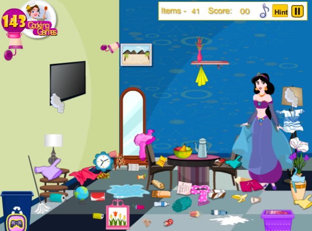 Princess Jasmine looks sad today. She has to clean the guest room also. Your helping hand is very much needed. Clean the guest room as soon as possible. Collect the waste things lying on the floor. And place them in the garbage. Give a spring cleaning to the room. Make the princess happy. Click to play the game free online now! Have a good time!