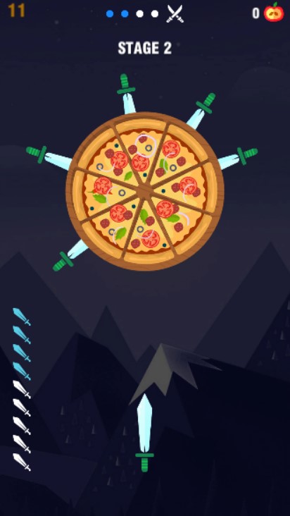 Do you like arcade games? Knife Hit Pizza is waiting for you. In the game, your mission is throwing knives to cut a variety of items. How to control your accuracy and strength well is the key to pass the level. In short, you need to insert all knives into the handle, avoid touching each other. Click to play the game free online now! Have a good time!