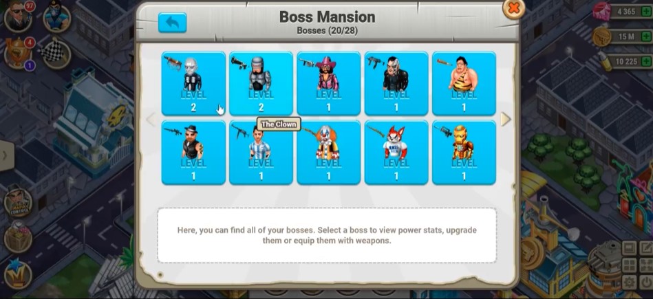 Buy stuff with the money you earn, such as treasures, troops, equipment, timers, shields, and more. You also have to buy ammunition in the ammunition factory. Engage in shooting battles to rise up the ranks. In the casino you can wager your money and win prizes (or lose, of course). Get rid of the police and join your friends as you battle against other families. Good luck!