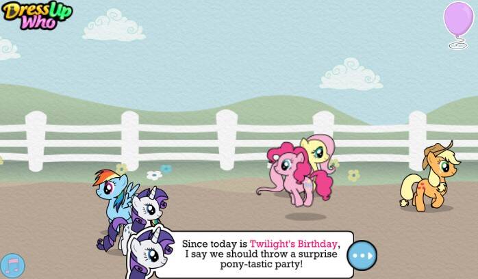 My Pony Birthday Surprise is an online game that you can play in modern browsers for free. My Pony Birthday Surprise Online is in the category of Movie. This game has received 9581 plays and 75% of game players have upvoted this game. My Pony Birthday Surprise is made with html5 technology, and it's available on only PC web. You can play the game free online on your Computer.