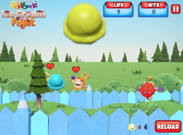 The mischievous Oddbods are at it again! Throw delicious ice cream at them, before they throwback! This ice cream fight is getting wild! The Oddbods can duck, run left and right, and also appear out of nowhere to attack you. Features: - Battle against different Oddbods such as Fuse, Bubbles, Pogo, Zee, Slick, Jeff and Newt. - boss levels with Fuse. He's a tough one to crack! - fun theme song - increasingly difficult challenges. Each Oddbod get smarter and faster over time. Click to play the game free online now! Have a good time~