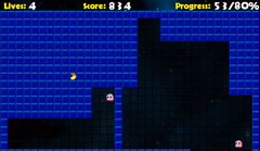 Combination of classic arcade games Pacman and Xonix, you must fill the empty space and captured the ghost.