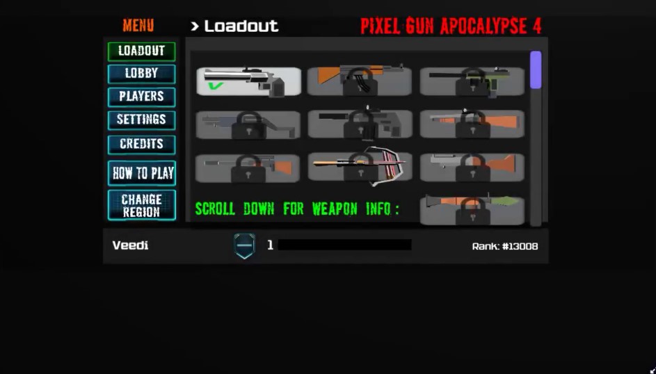 Pixel Gun Apocalypse 4 is an online game that you can play in modern browsers for free. Pixel Gun Apocalypse 4 Online is in the category of Shooting. This game has received 9055 plays and 82% of game players have upvoted this game. Pixel Gun Apocalypse 4 is made with WebGL technology, and it's available on only PC web. You can play the game free online on your Computer.