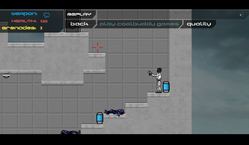 Full title: Plazma Burst Forward to the Past. On our planet impending. Scientists invented the time machine, which should send two volunteers with equipment in the past to change the course of events. One of these volunteers and you have become. However, since teleportation you understand that this is not the place where you should send... And maybye it is not the correct time... Read Controls closely. You also can Use Ragdolls... Read Hints at hint-line what never dissapears. Particularly in last level.... Crouch before falling from high places and land only on highest postitions. Your armor is very heavy and You can be splitted in two parts. End level guys very powerfull and physically heavy. But one clear head-shot from fully upgrated plazma cannon gun can kill them. To disturb enemy aim, use rifle. Last-level miniboses begins to fire in the ceil and floor.
