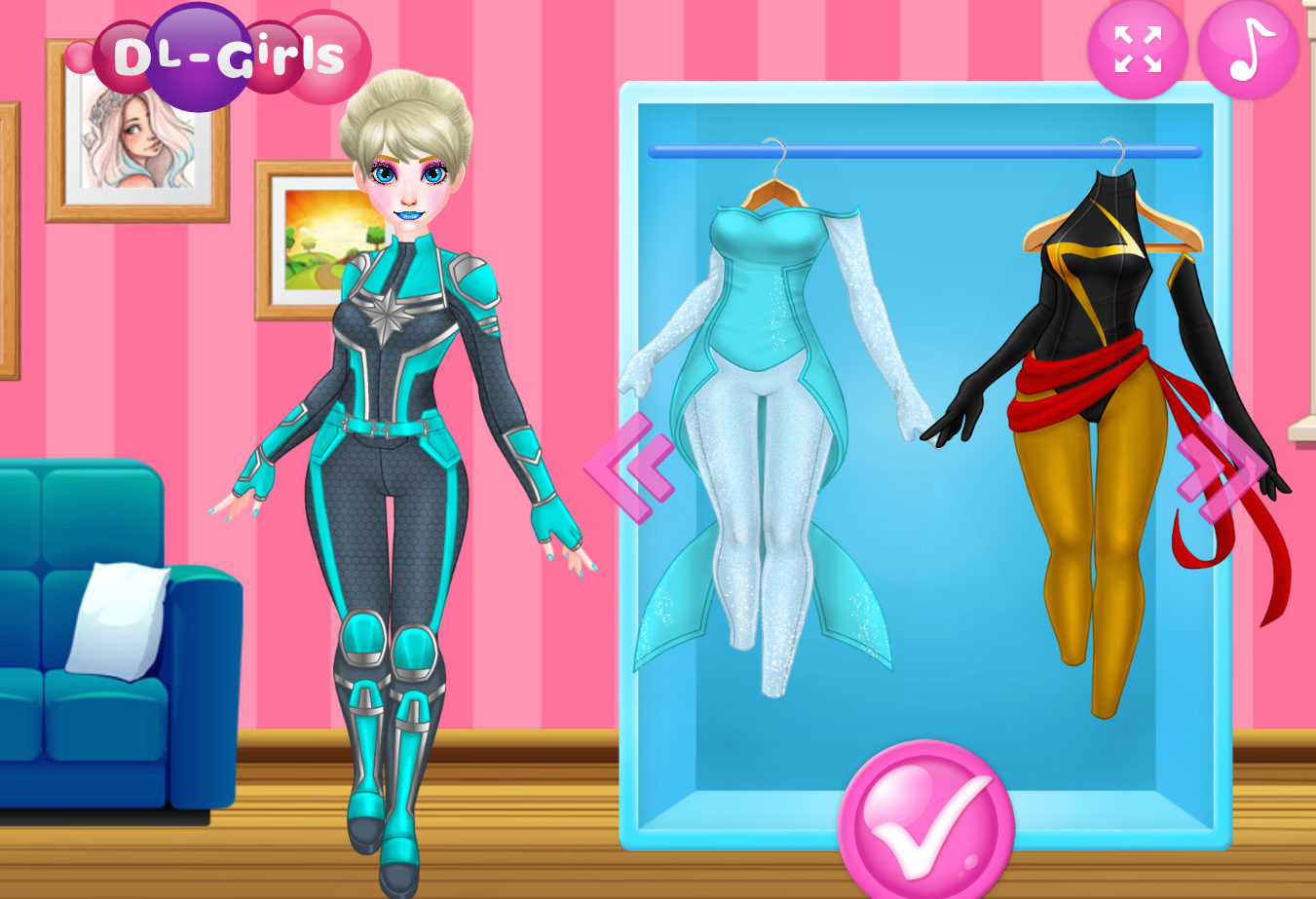 In the kingdom of Ice, all is calm. But the forces of evil are not asleep. Queen Elsa will fight with them. Help Elsa choose a superhero costume for giving her brave. Do not forget about the expressive makeup and hair. Enjoy playing this wonderful game!