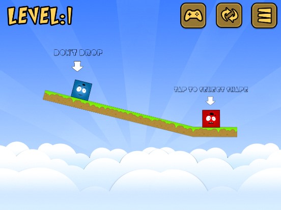 Red Drop is a physics arcade game as matter of fact. You are able to control all the blocks, but you need to keep the blue one stay on the platform and make the red ones drop from the platform. To do this you have to click a box to transform it into a ball, click the ball to transform it back into a box. Try to complete all levels. Click to play the game free online now! Have a good time!