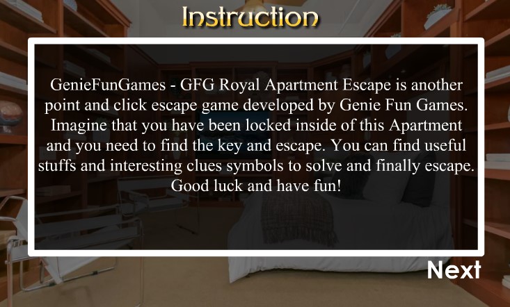 Royal Apartment Escape is an online game that you can play in modern browsers for free. Royal Apartment Escape Online is in the category of Skill. This game has received 28453 plays and 71% of game players have upvoted this game. Royal Apartment Escape is made with Flash technology, and it's available on only PC web. You can play the game free online on your Computer.