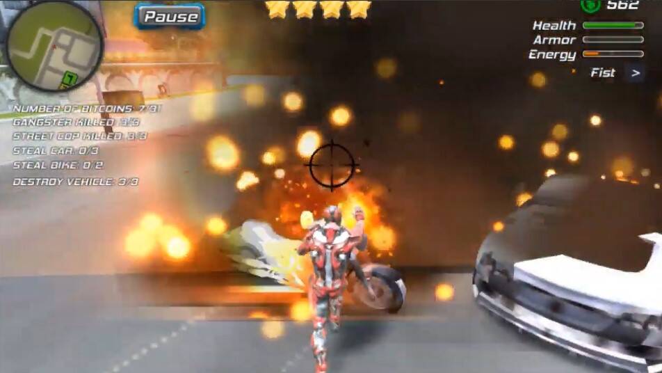 Super Crime Steel War Hero is a city simulation game. In the game, you control a superhero that is similar to the amazing Iron Man! You must move around and explore the vast 3D city and try to bring the criminals and gangsters to justice. Have a great time and good luck!